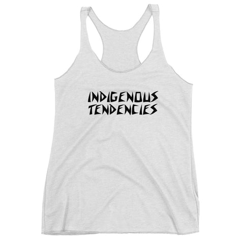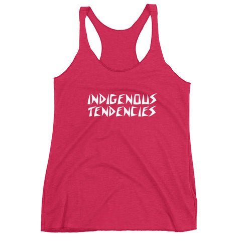 "Indigenous Tendencies" Womens Racerback Tank Top. It's getting warmer. Represent your indigenous tendencies and support 6thSunRidaz.com Native youth and community education website and programming.